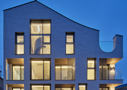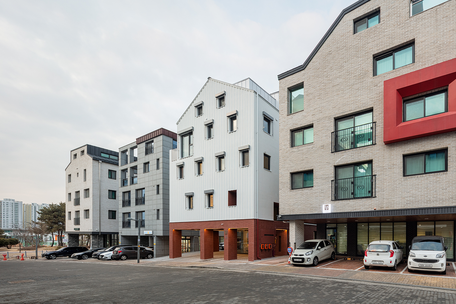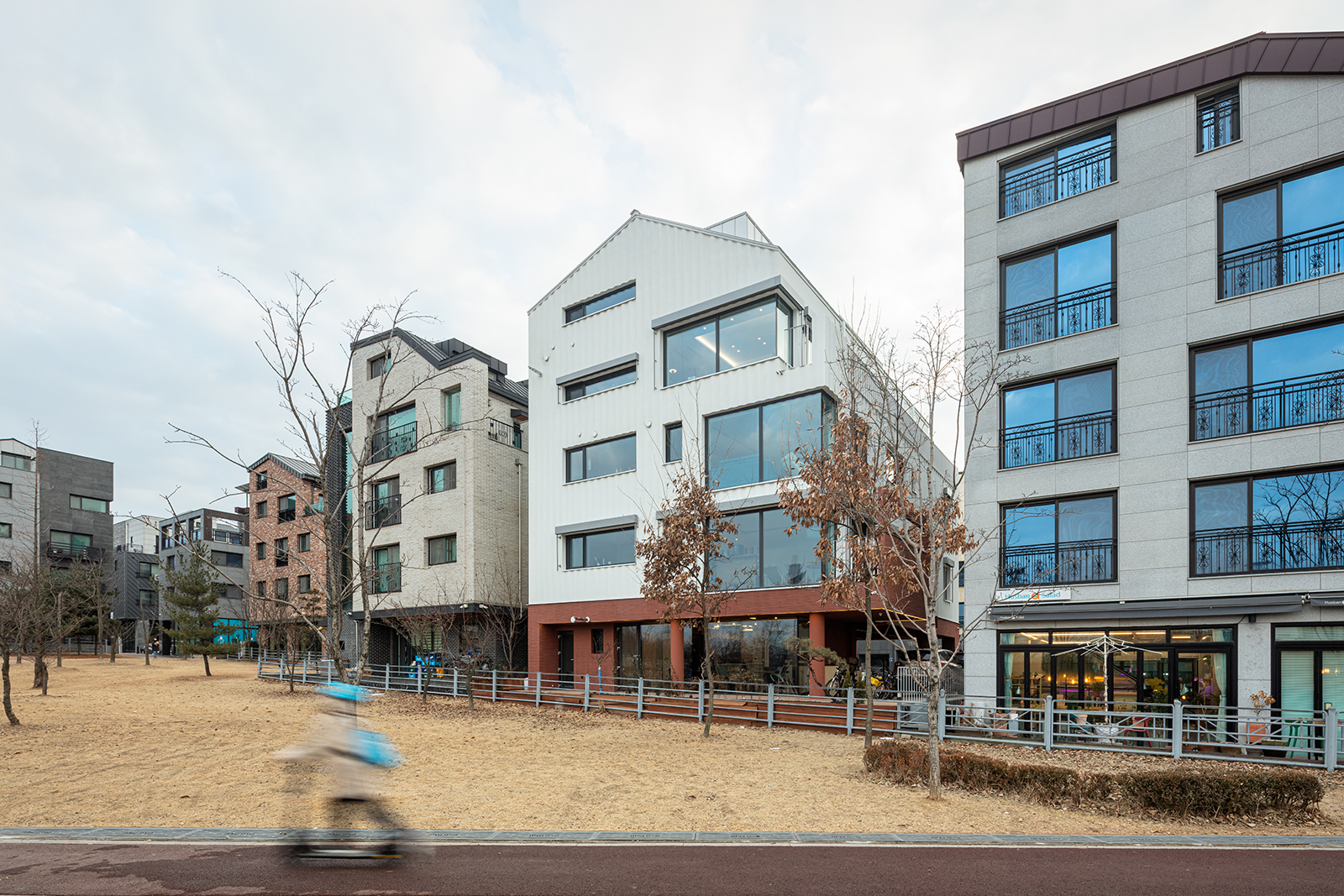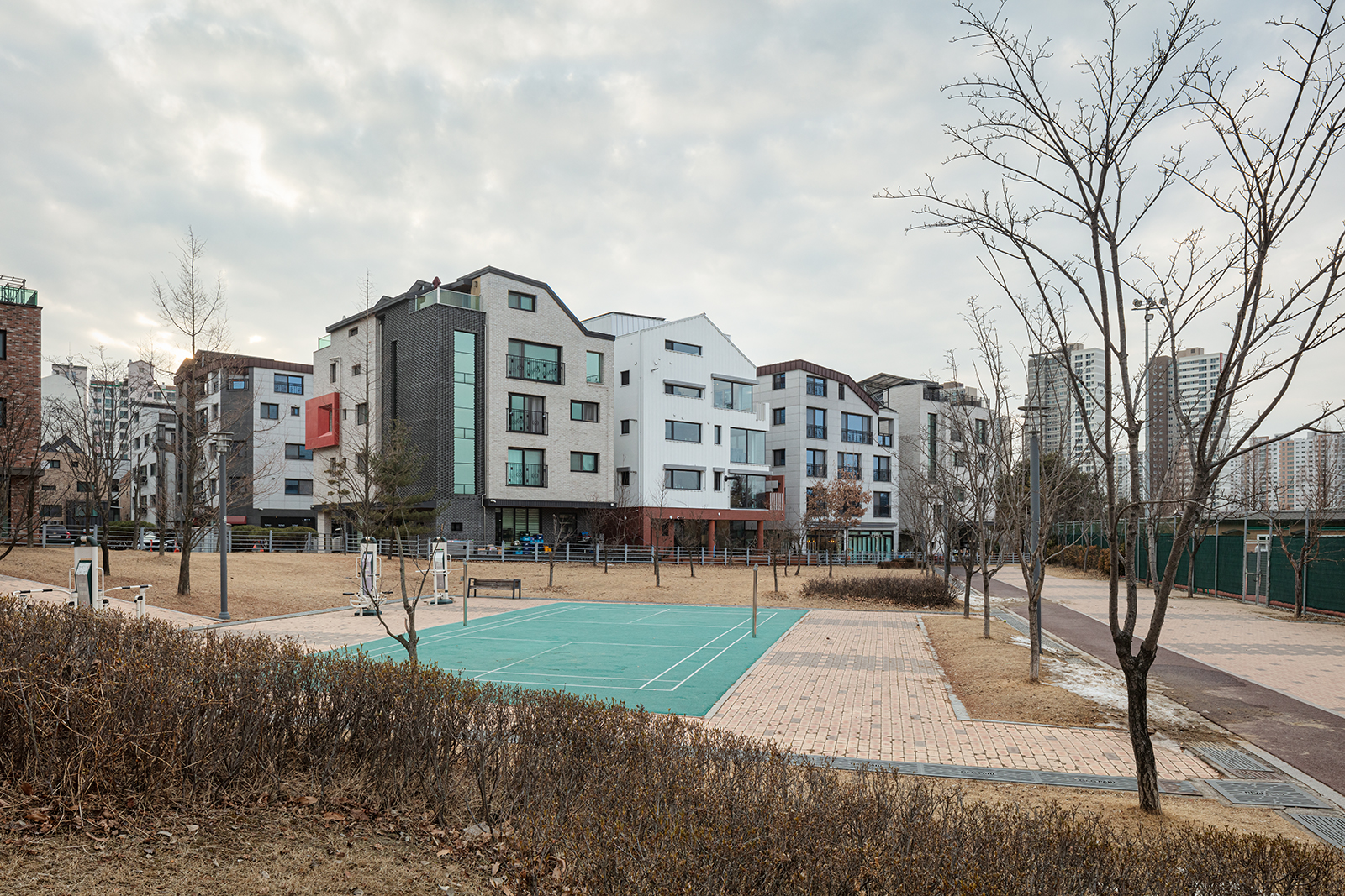 특히 외부 블라인드는 일사 차단 외에도 프라이버시 차단 효과가 크므로 공원 쪽으로 완전히 개방된 창호를 계획하는 것이 가능하였으며, 다양하게 변주되는 개폐의 움직임이 무표정한 택지개발지구에 활력을 준다. 외단열시스템의 입면에 볼록볼록한 입체감을 준 것은 더불어 풍성한 표정을 만들고 저층부의 붉은 색 벽돌은 공원의 녹색과 대비되어 눈길과 발길을 끈다.