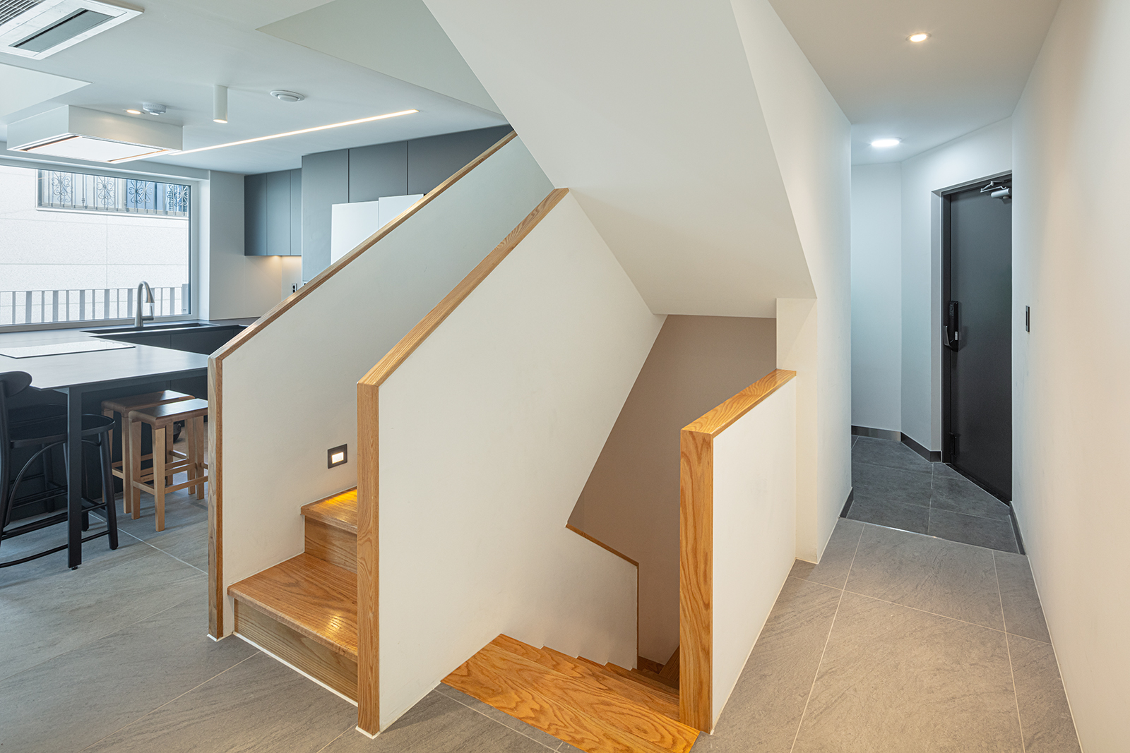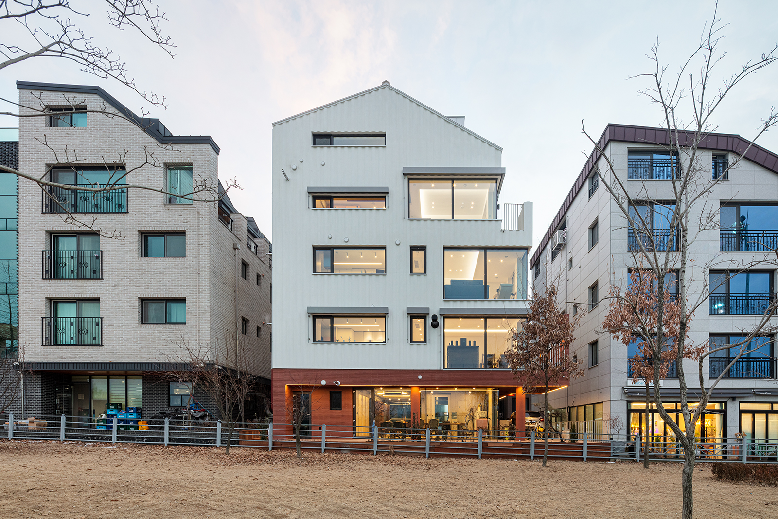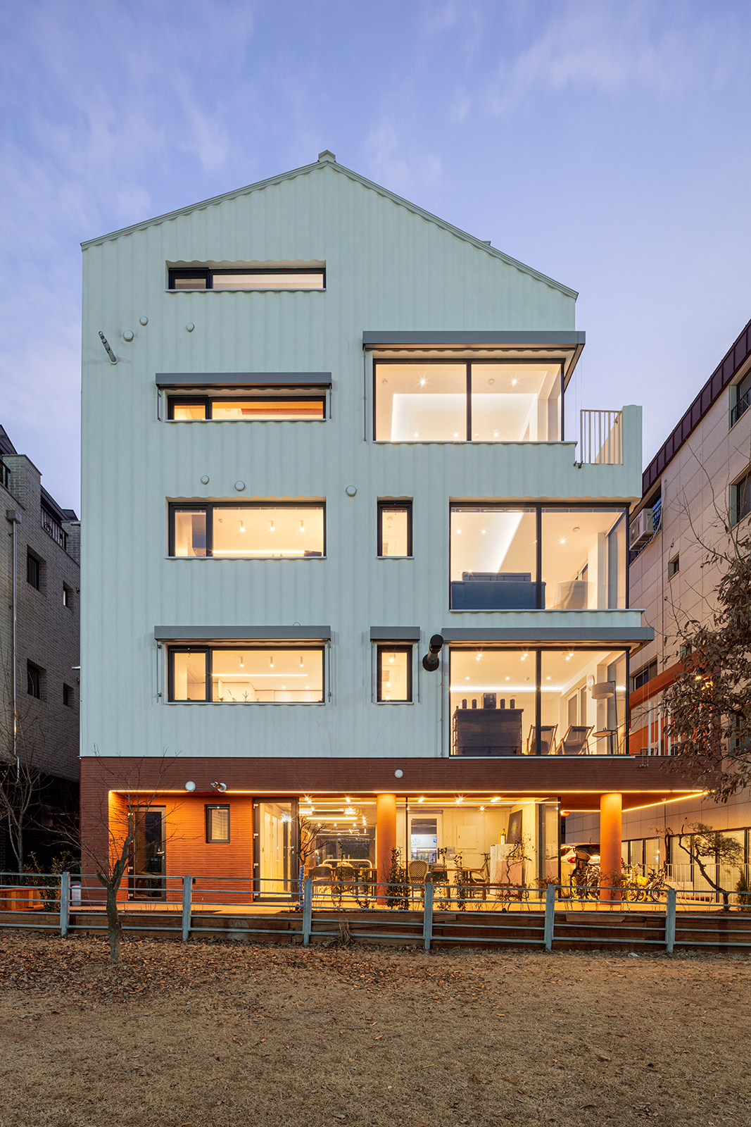 기능성과 기하학적 질서를 고려한 외관이지만, 내부는 정반대의 다양함과 따뜻함이 감춰져 있는 다양한 정씨들이 모여 있는 ‘다정’한 집이다.