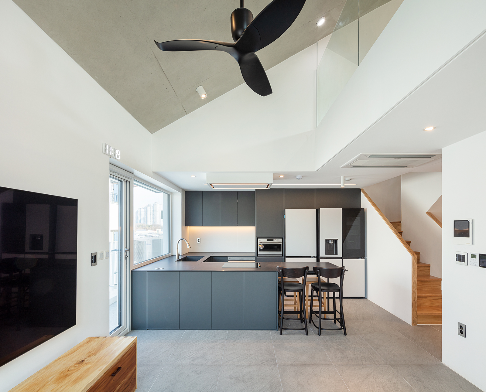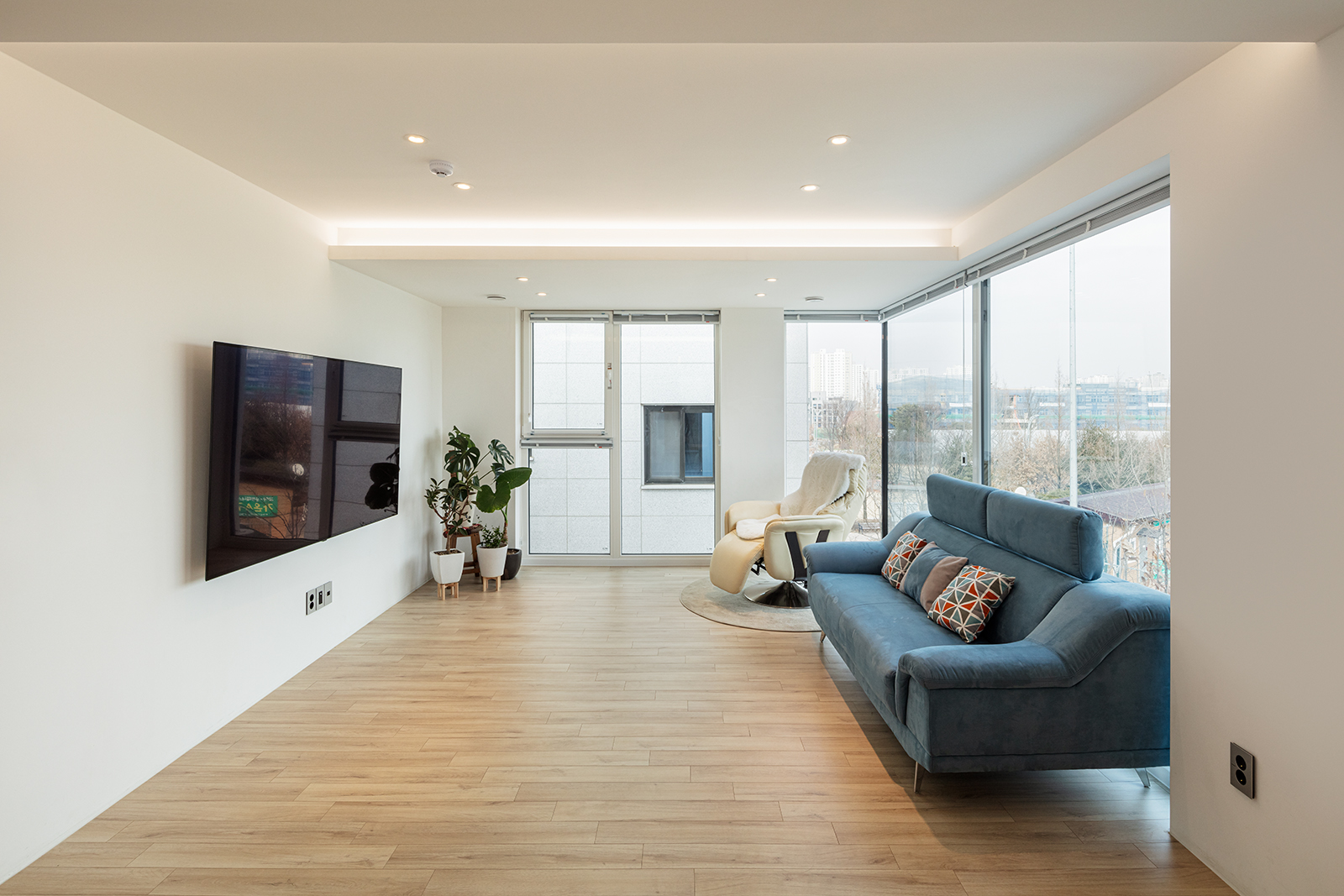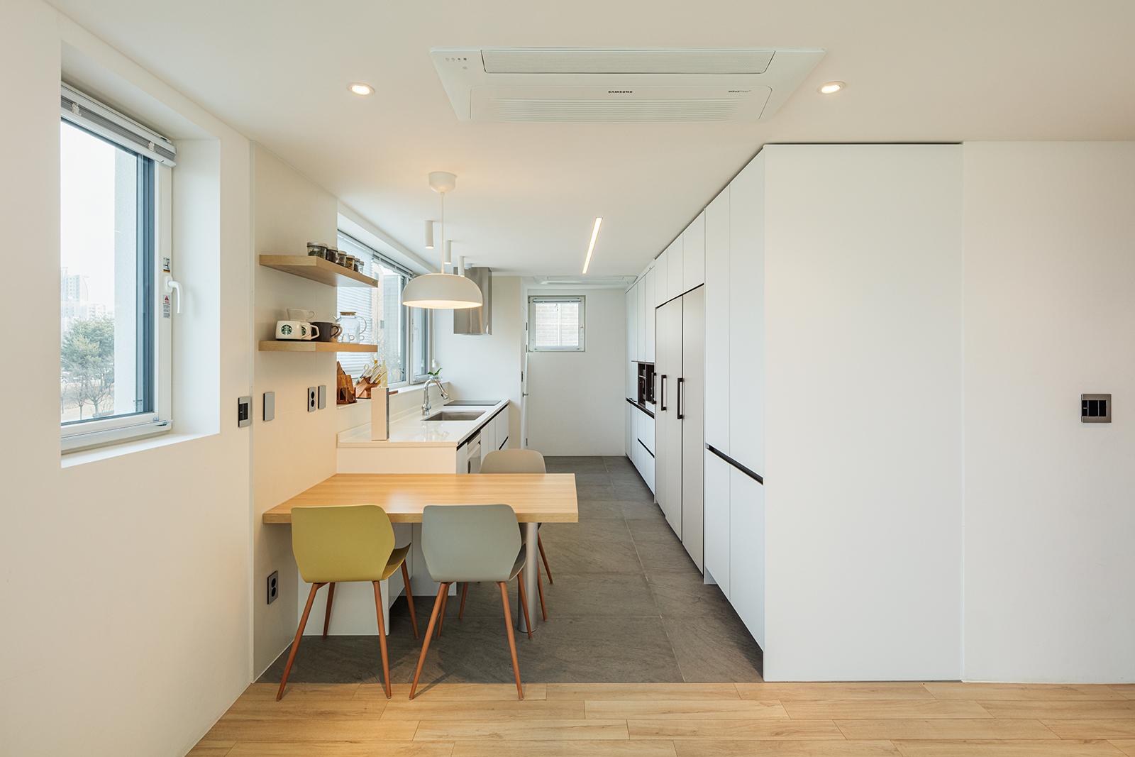 기능성과 기하학적 질서를 고려한 외관이지만, 내부는 정반대의 다양함과 따뜻함이 감춰져 있는 다양한 정씨들이 모여 있는 ‘다정’한 집이다.