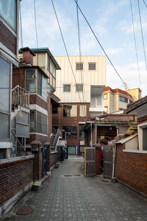 대지는 마포구 망원역 동측 주택가 어느 막다른 골목에 위태롭게 접하여 있다. 대지 형상은 나란하거나 직각인 부분이 없는 다각형 형상으로 기존 건물은 완공된지 곧 25년을 앞둔 반지하 한 개층과 지상 2개층으로 구성된 연와조 건물이다. 4m 너비 막다른 도로 끝자락에 자리잡은 대지는 90㎡ 면적으로 주차장 설치를 위한 공간은 전혀 고려의 대상이 아니었다.