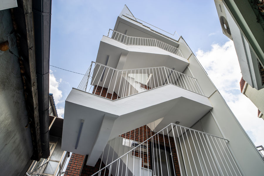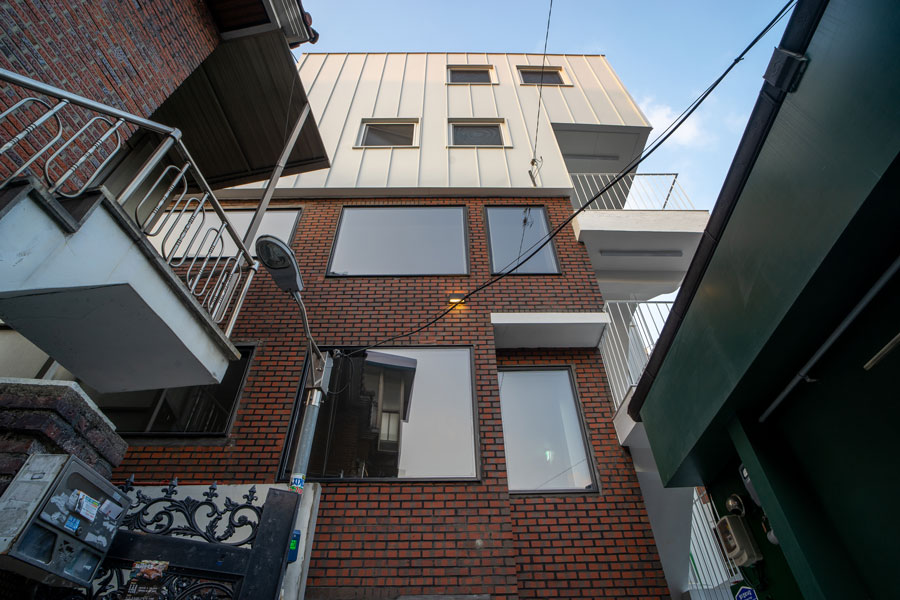 신축이 아닌 리모델링을 진행할 경우 어느 부분까지 계획 영역으로 포함할지 고민스러운 부분이다. 단열이나 기밀 등 건물의 성능 향상과 함께 2개층 증축은 다분히 일반적일 수 있다. 하지만 ‘오브젝트 아파트먼트’에서 우리는 붉은 양옥벽돌집의 주택 외관을 최대한 간직하고자 하였다. 당시 도시 주거지 다가구주택의 전형이라 할 수 있는 붉은색 구운 벽돌과 백색 페인트 미장마감의 조합 그리고 창의 비례는 최대한 원형을 유지하였다. 이는 완공 후 그 안에 놓이게 될 소품을 선정한 이유와 맥락을 같이하고 있다. 오래되었지만, 충분히 시효성이 있는 건축과 제품을 함께 드러내게 되었다.